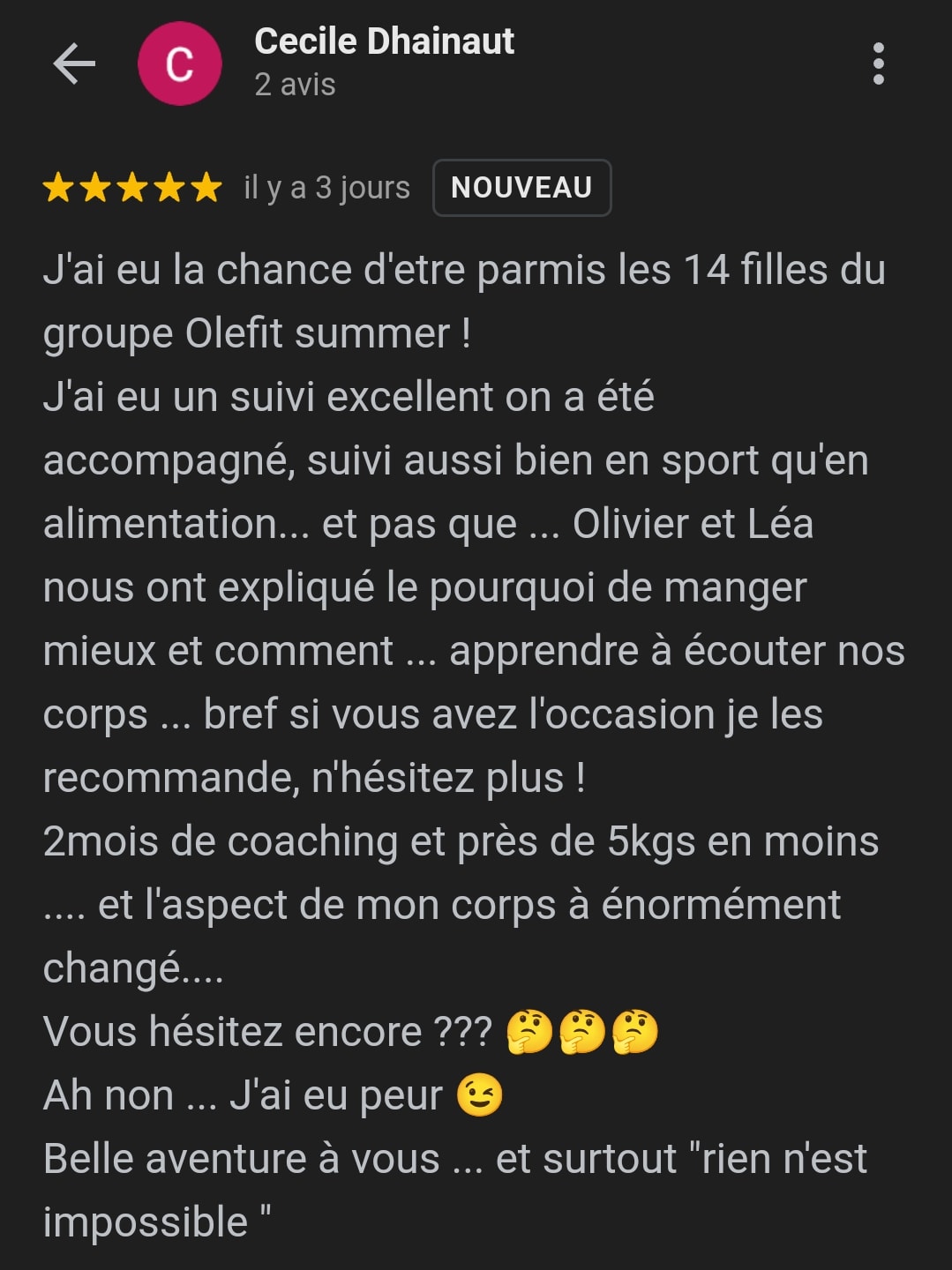 Avec notre accompagnement OLEFIT premium, nous avons aidé des centaines de femmes à atteindre leurs objectifs de remise en forme. Notre approche repose sur trois piliers essentiels : le sport, la nutrition et le mindset. Nous sommes convaincus que ces trois éléments sont les clés pour débloquer votre perte de poids de manière durable.